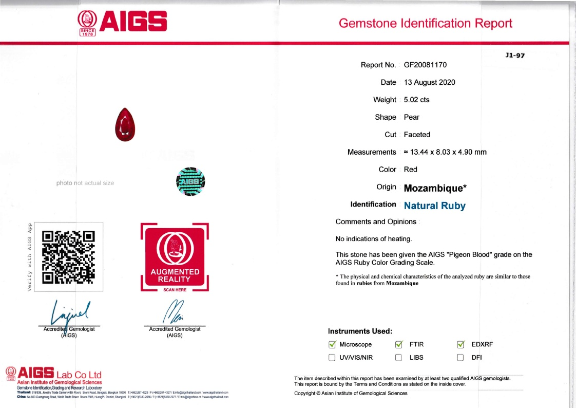 Loose Mozambique Ruby Gemstone AIGS Certified Mozambique Ruby