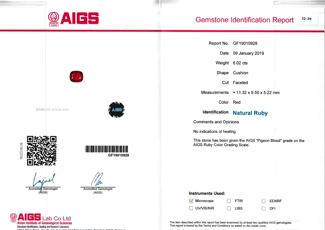 Loose Mozambique Ruby Gemstone AIGS Certified Mozambique Ruby