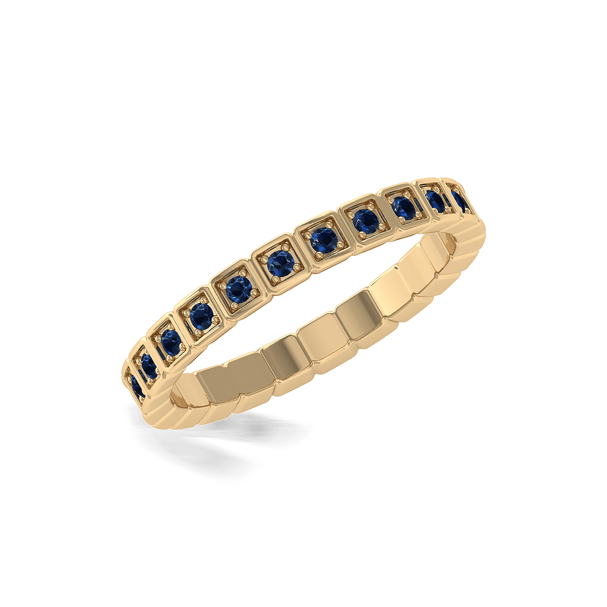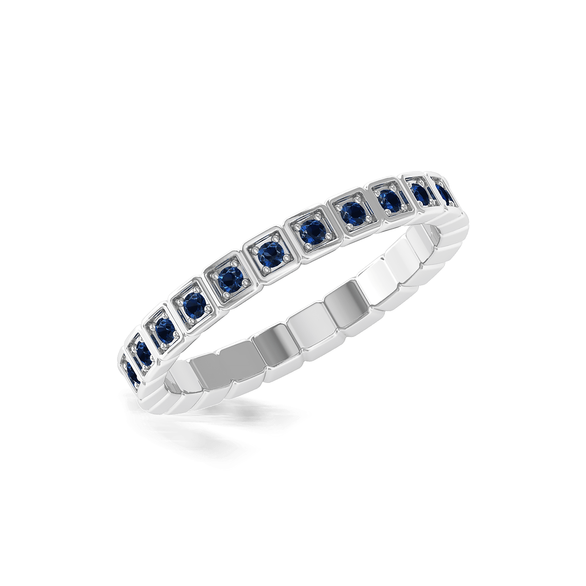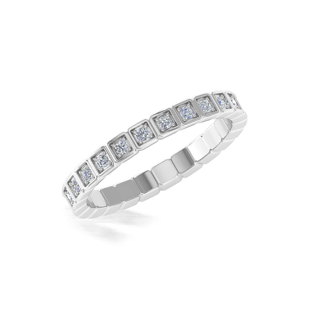 A unique and stylish Eternity Ring with glittering gemstones with a cubical border giving a bold and stylish look for the design.