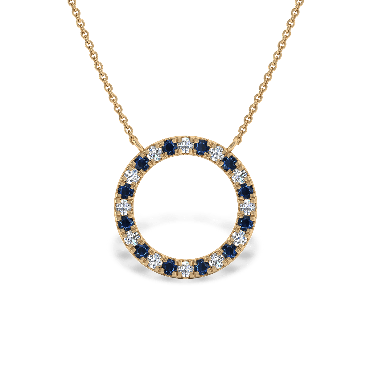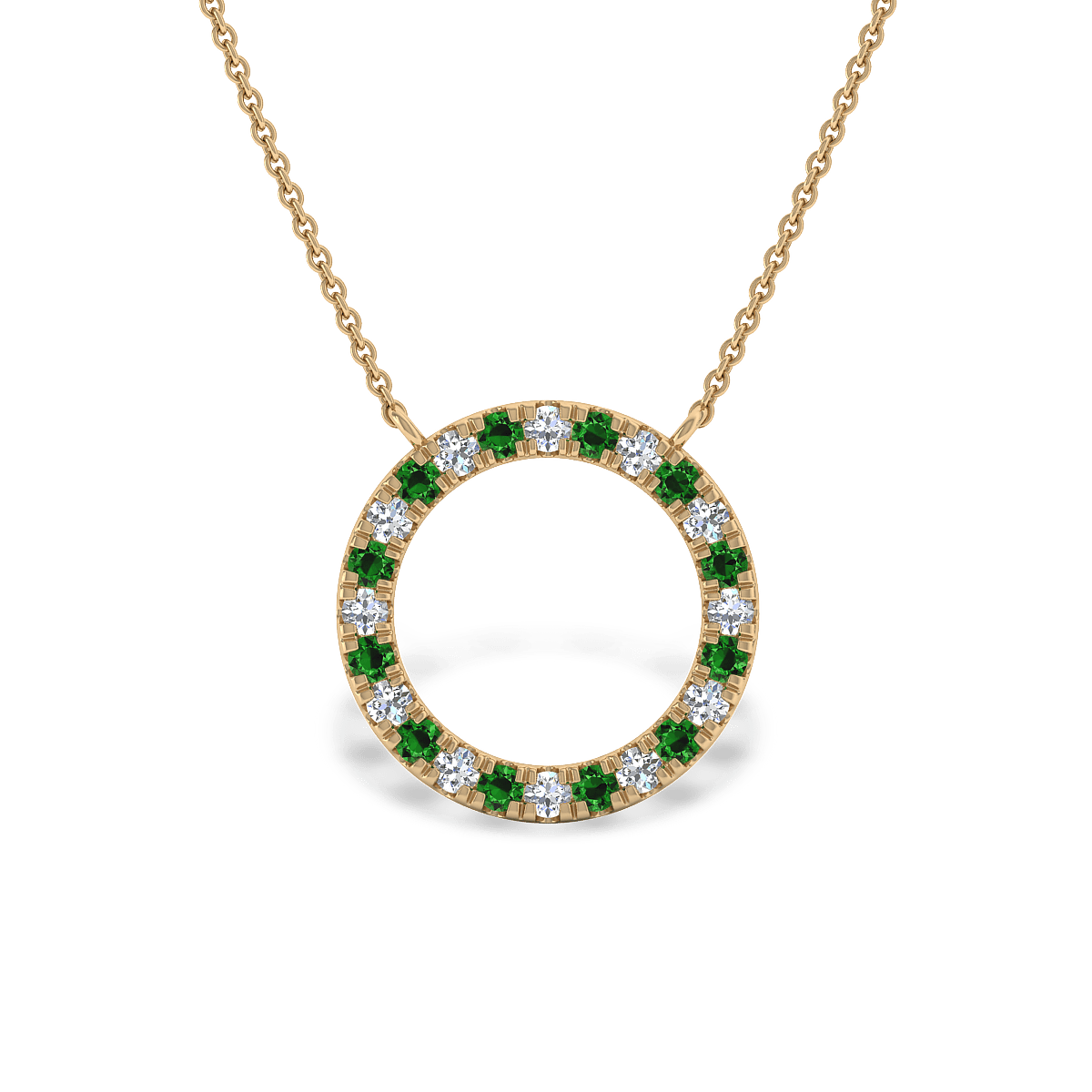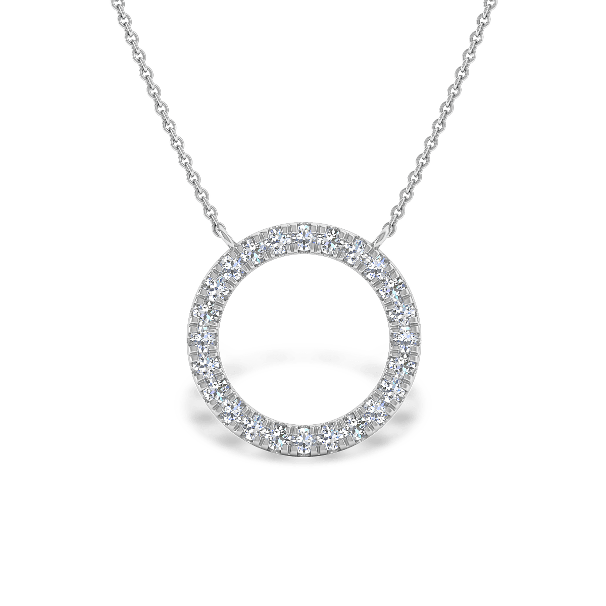 A simple Halo Pendant for everyday wear with glittering gemstones in pave settings. This design includes a solid 18k gold chain with 18in length.