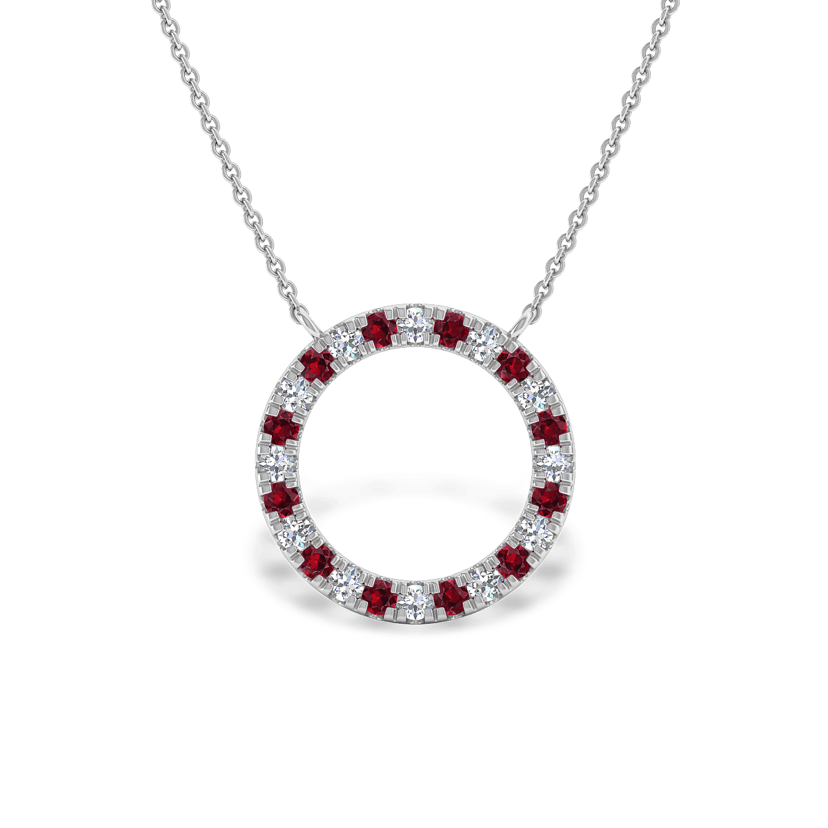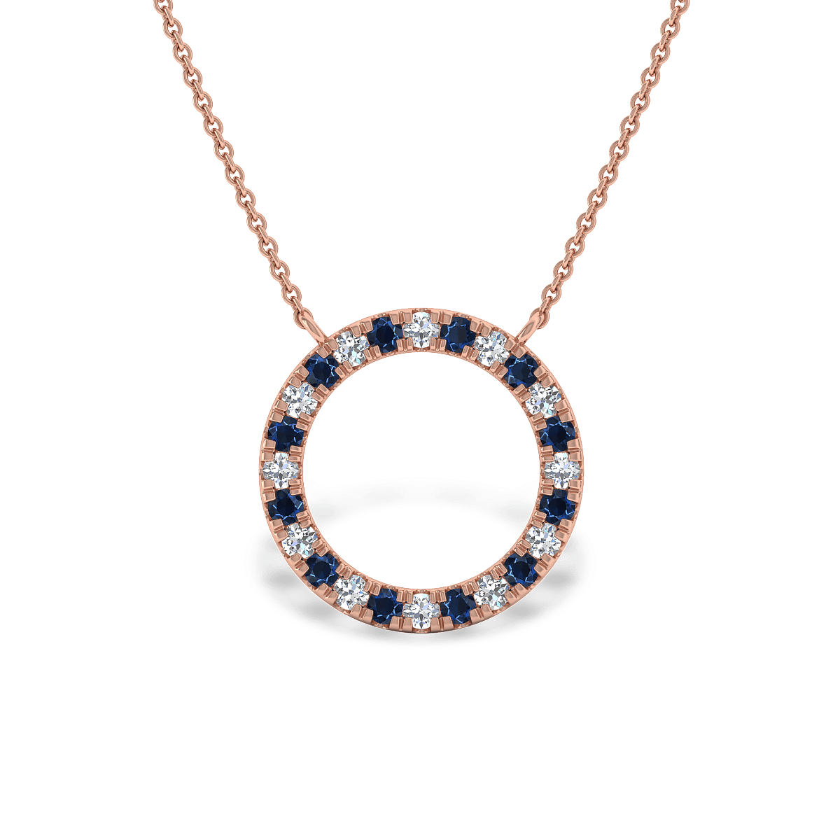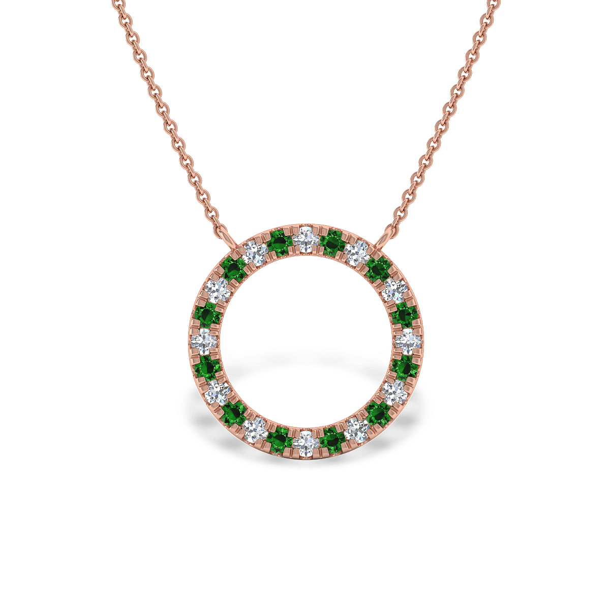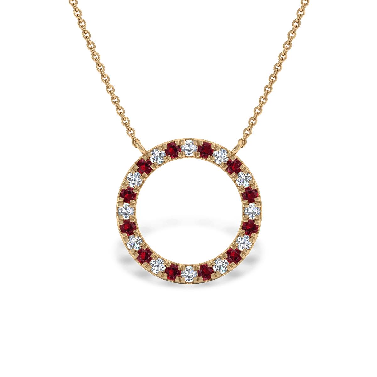 A simple Halo Pendant for everyday wear with glittering gemstones in pave settings. This design includes a solid 18k gold chain with 18in length.