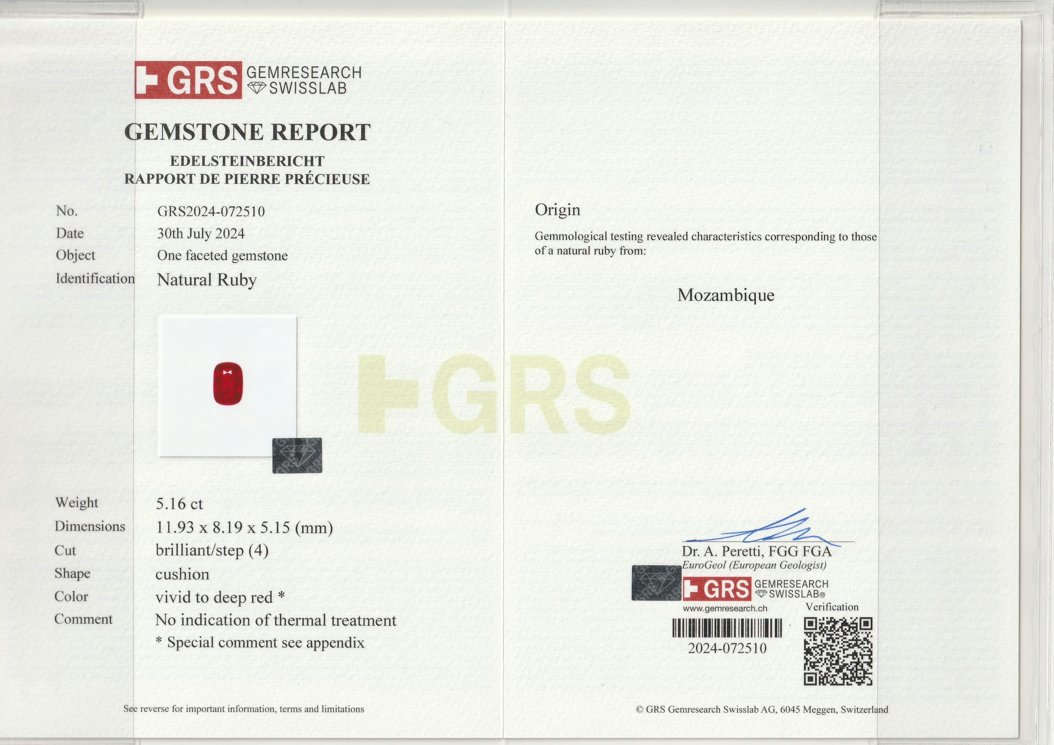 Loose Mozambique Ruby Gemstone GRS Certified Mozambique Ruby