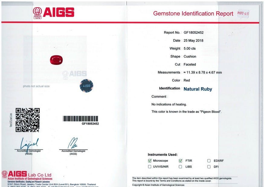 Loose Mozambique Ruby Gemstone AIGS Certified Mozambique Ruby