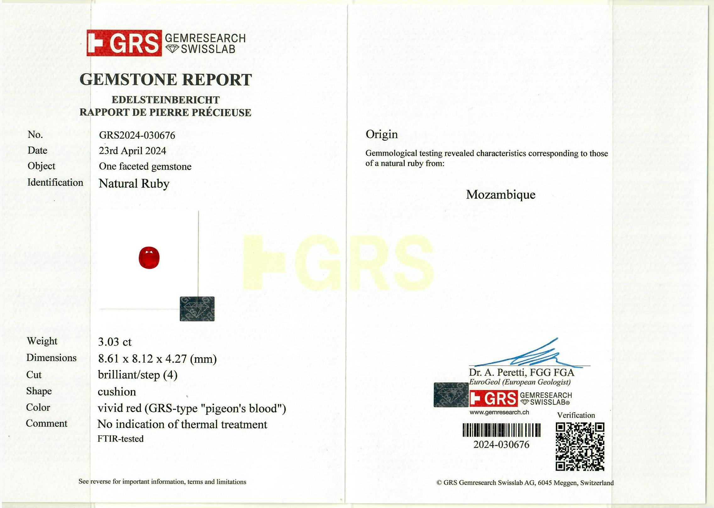 | Lab | GRS / Pigeon's Blood (F) |