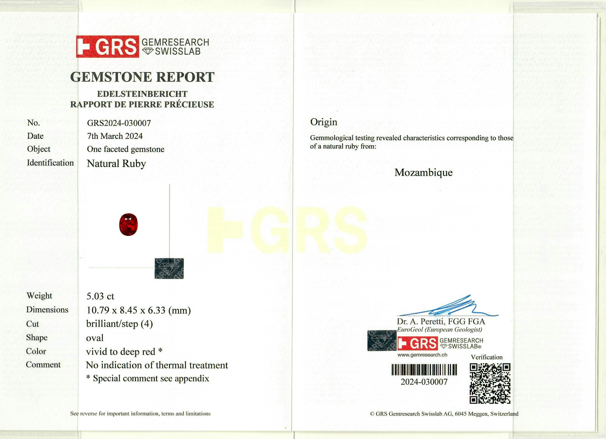 Loose Mozambique Ruby Gemstone GRS Certified Mozambique Ruby