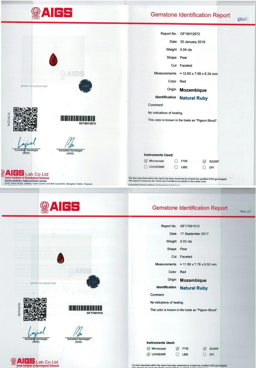 Loose Mozambique Ruby Gemstone AIGS Certified Mozambique Ruby