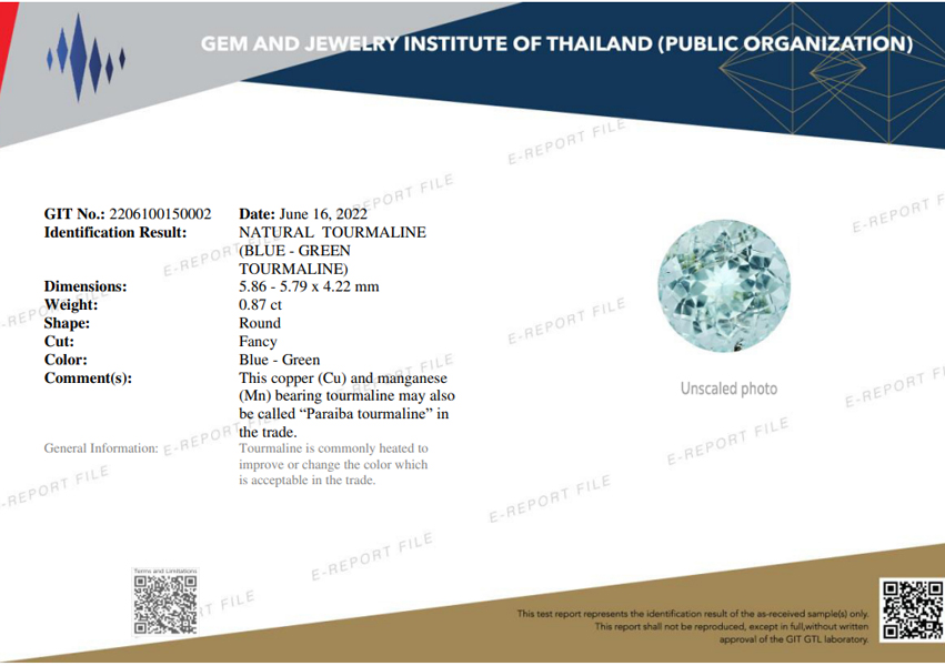 | Type | Natural Paraiba Tourmaline |