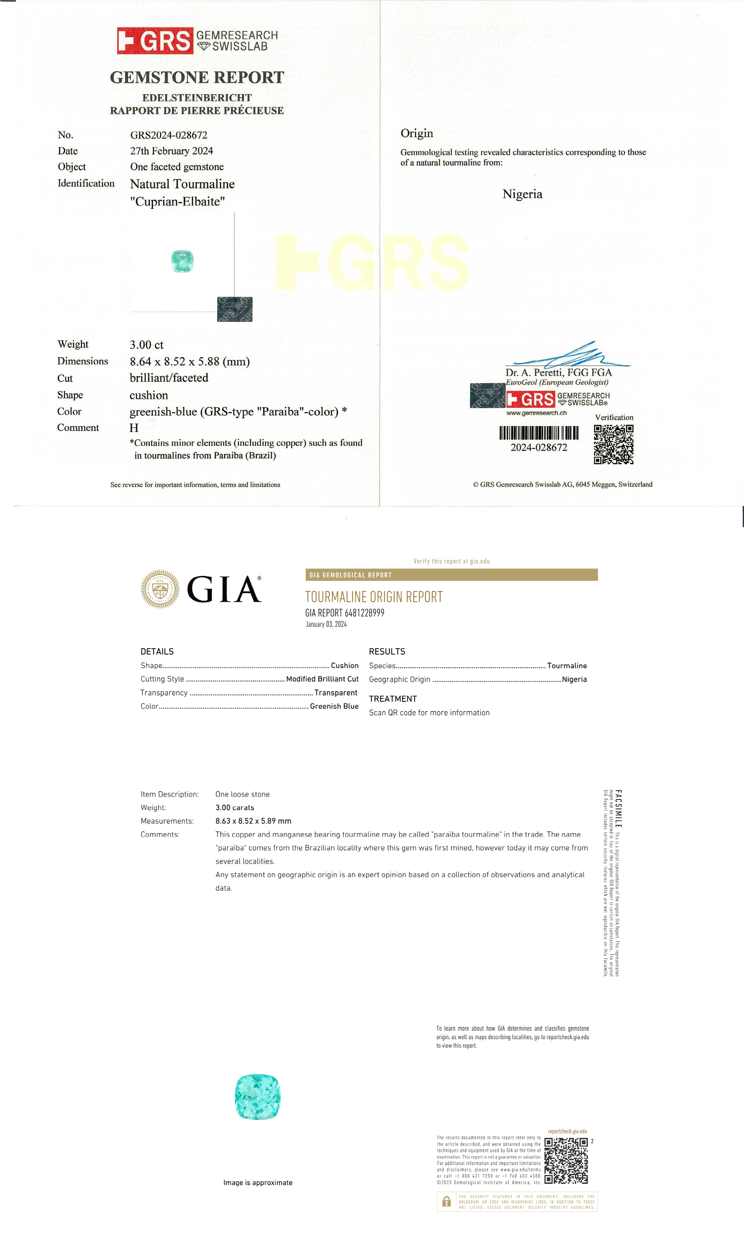 Loose Paraiba Tourmaline Gemstone GRS Certified Paraiba Tourmaline