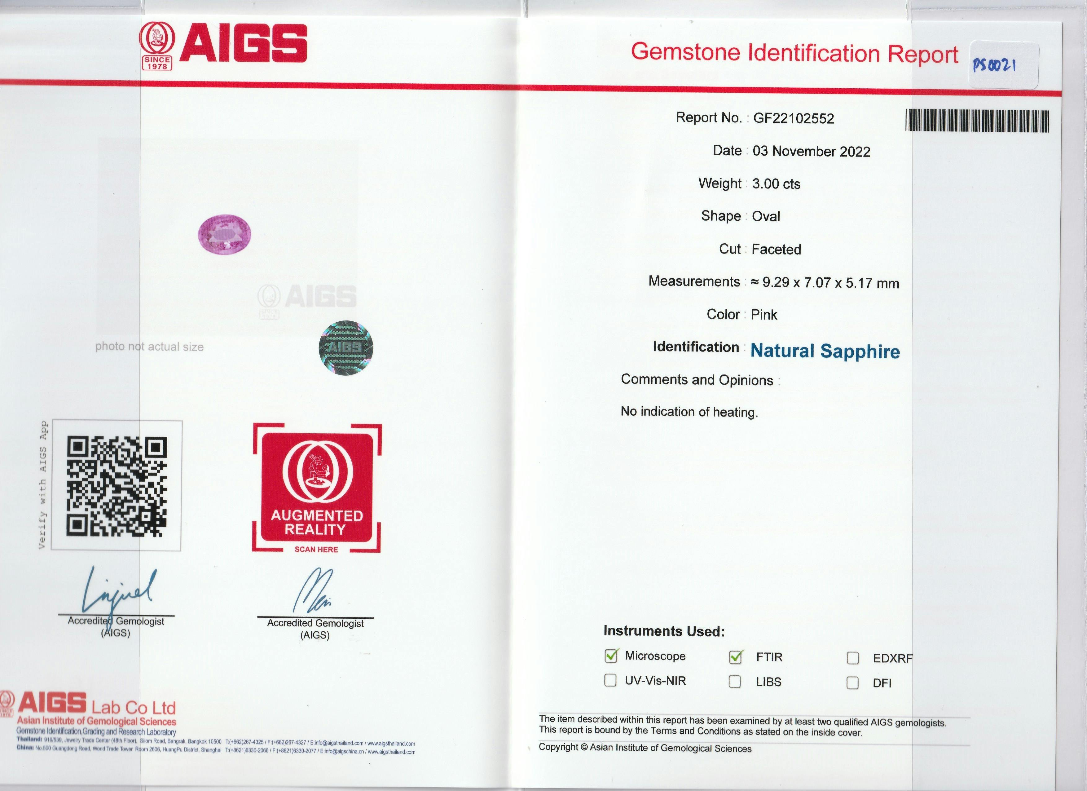 Loose Pink Sapphire Gemstone AIGS Certified Pink Sapphire