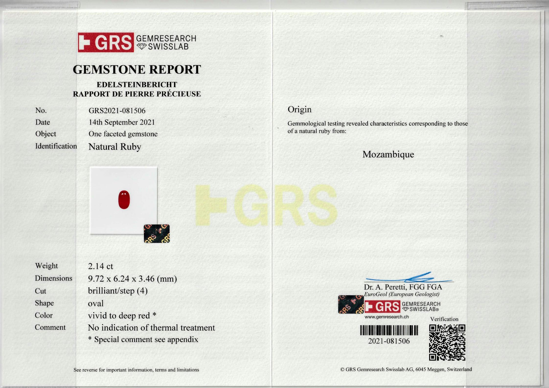Loose Mozambique Ruby Gemstone GRS Certified Mozambique Ruby