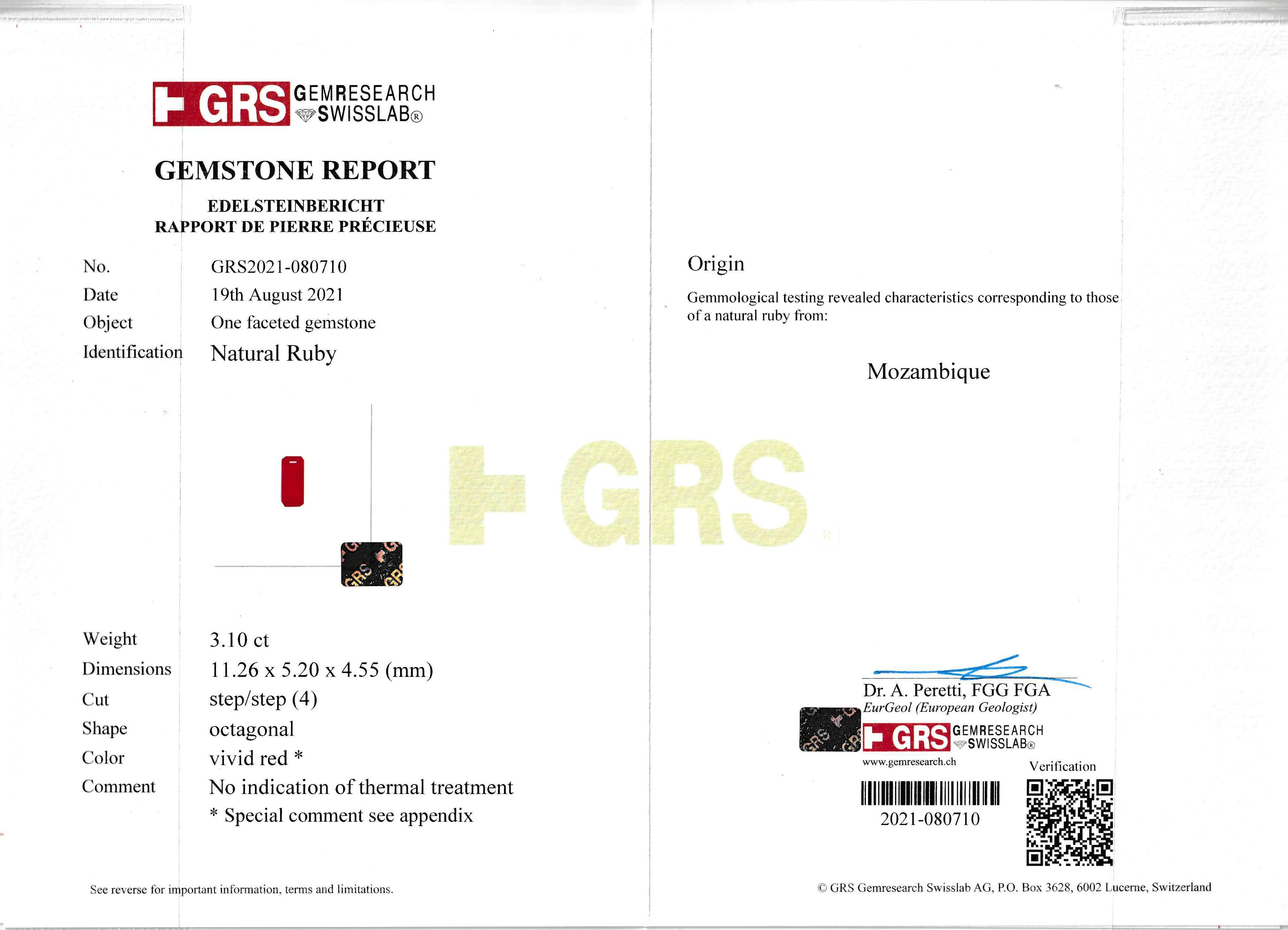Loose Mozambique Ruby Gemstone GRS Certified Mozambique Ruby
