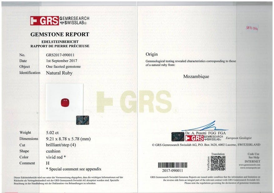 Loose Mozambique Ruby Gemstone GRS Certified Mozambique Ruby