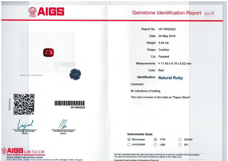 Loose Mozambique Ruby Gemstone AIGS Certified Mozambique Ruby