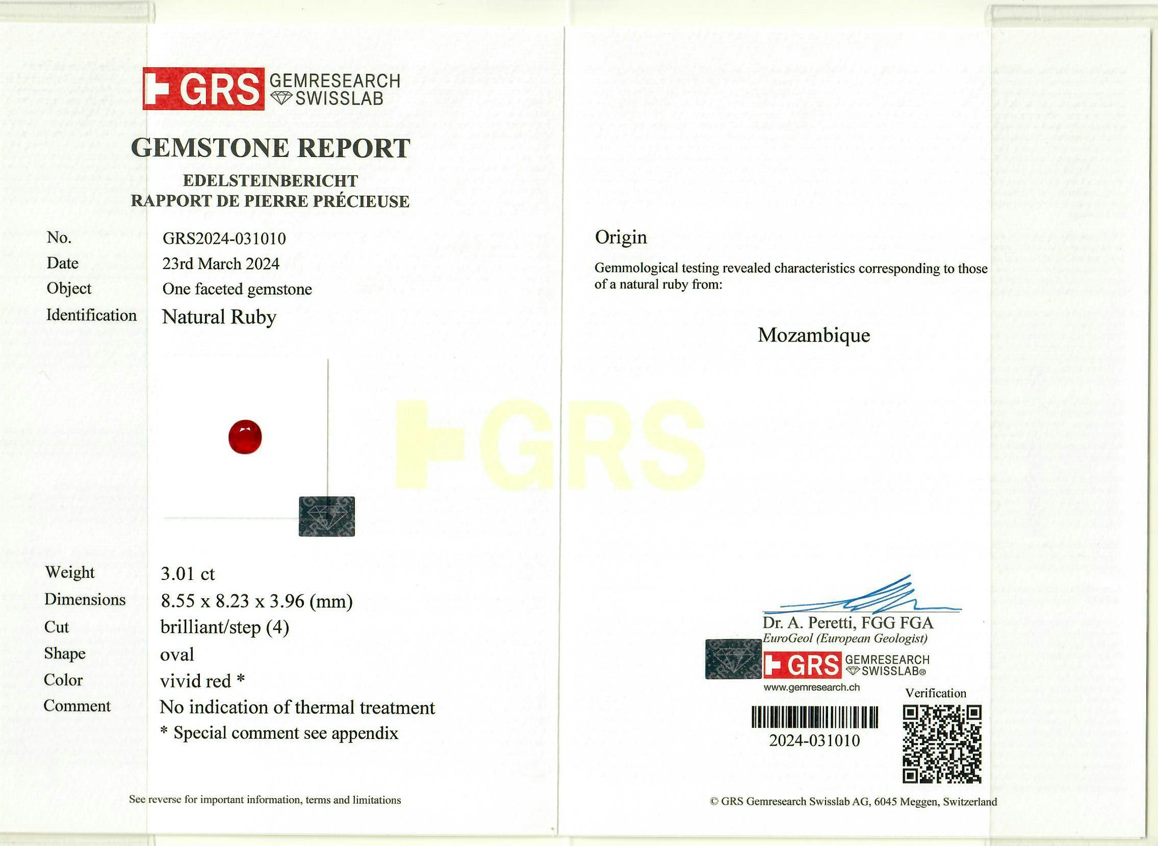 | Lab | GRS / Pigeon's Blood |