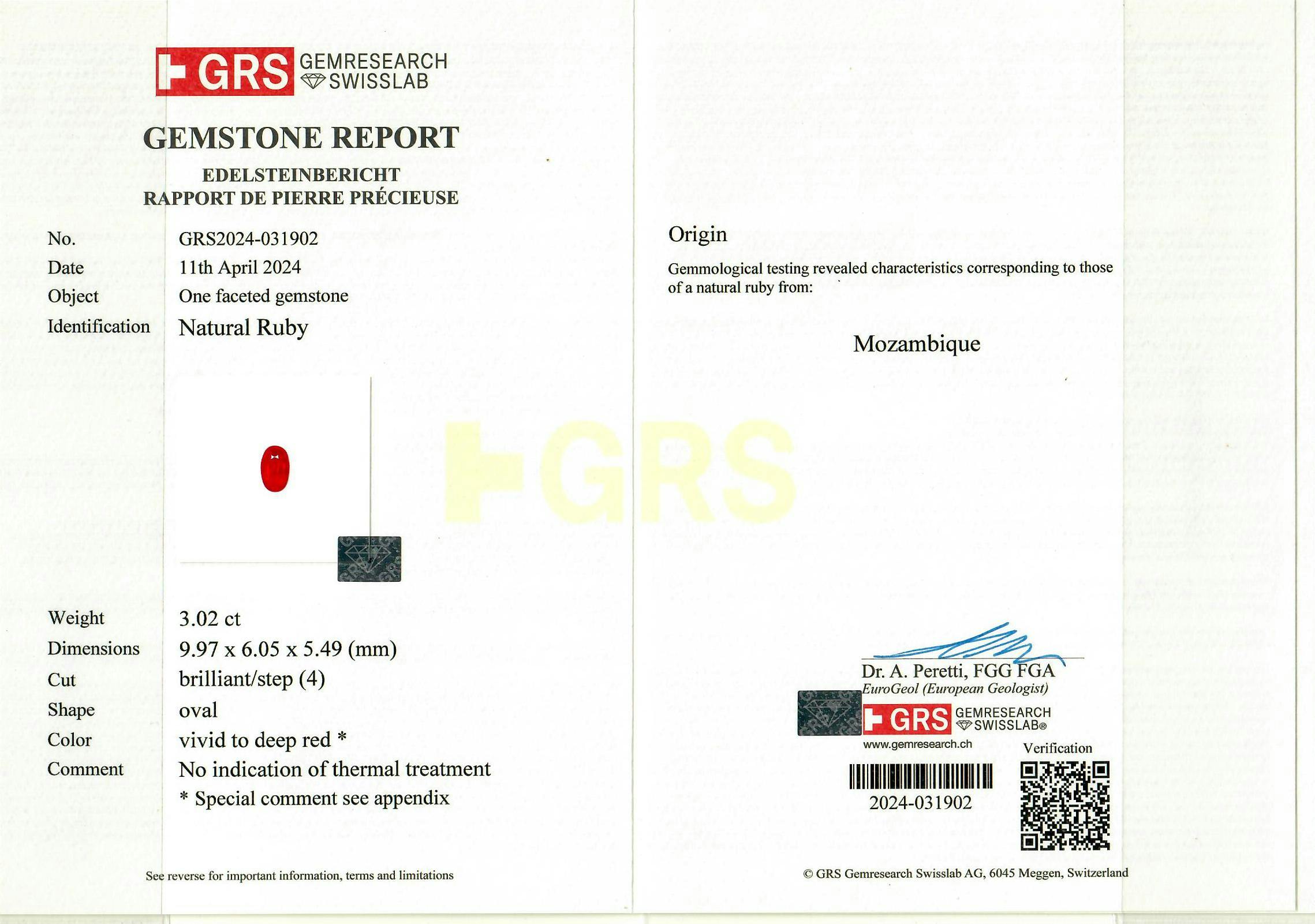 Loose Mozambique Ruby Gemstone GRS Certified Mozambique Ruby