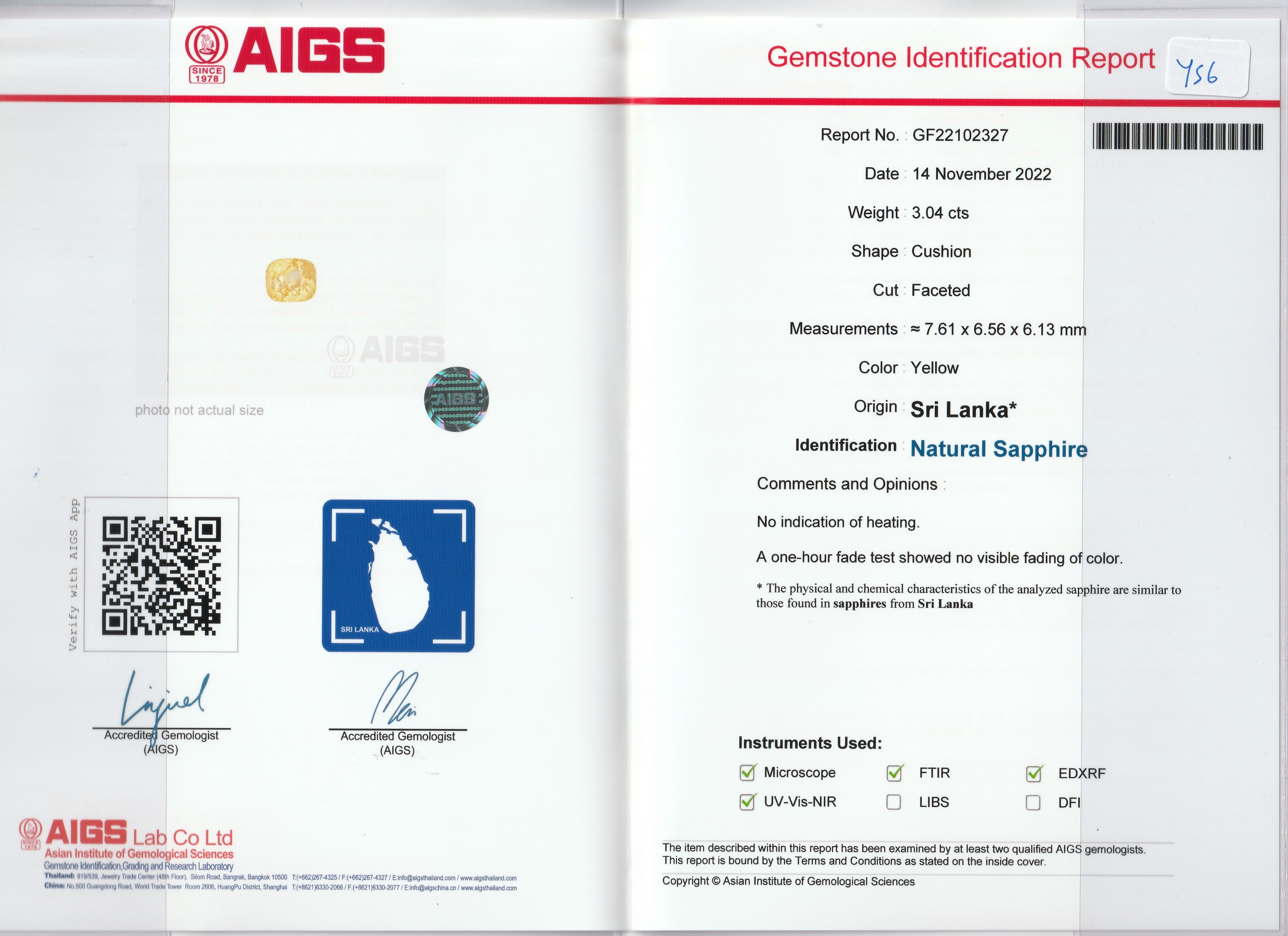 Loose Yellow Sapphire Gemstone AIGS Certified Yellow Sapphire