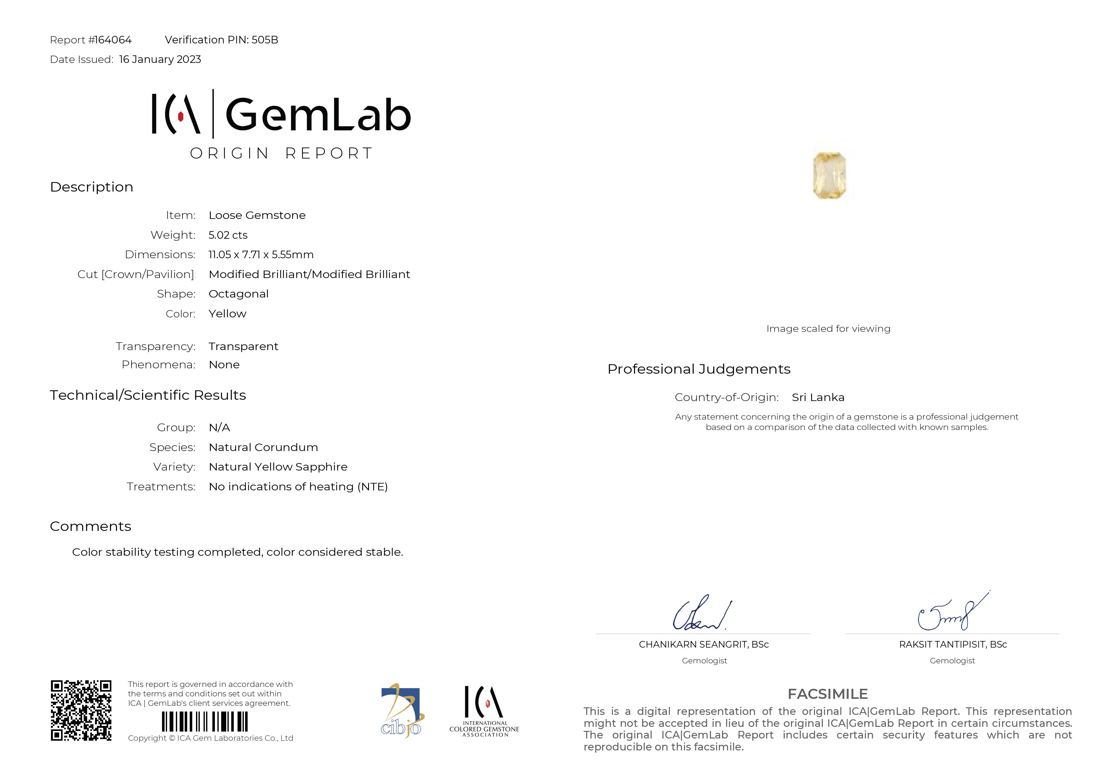 Loose Yellow Sapphire Gemstone ICALAB Certified Yellow Sapphire