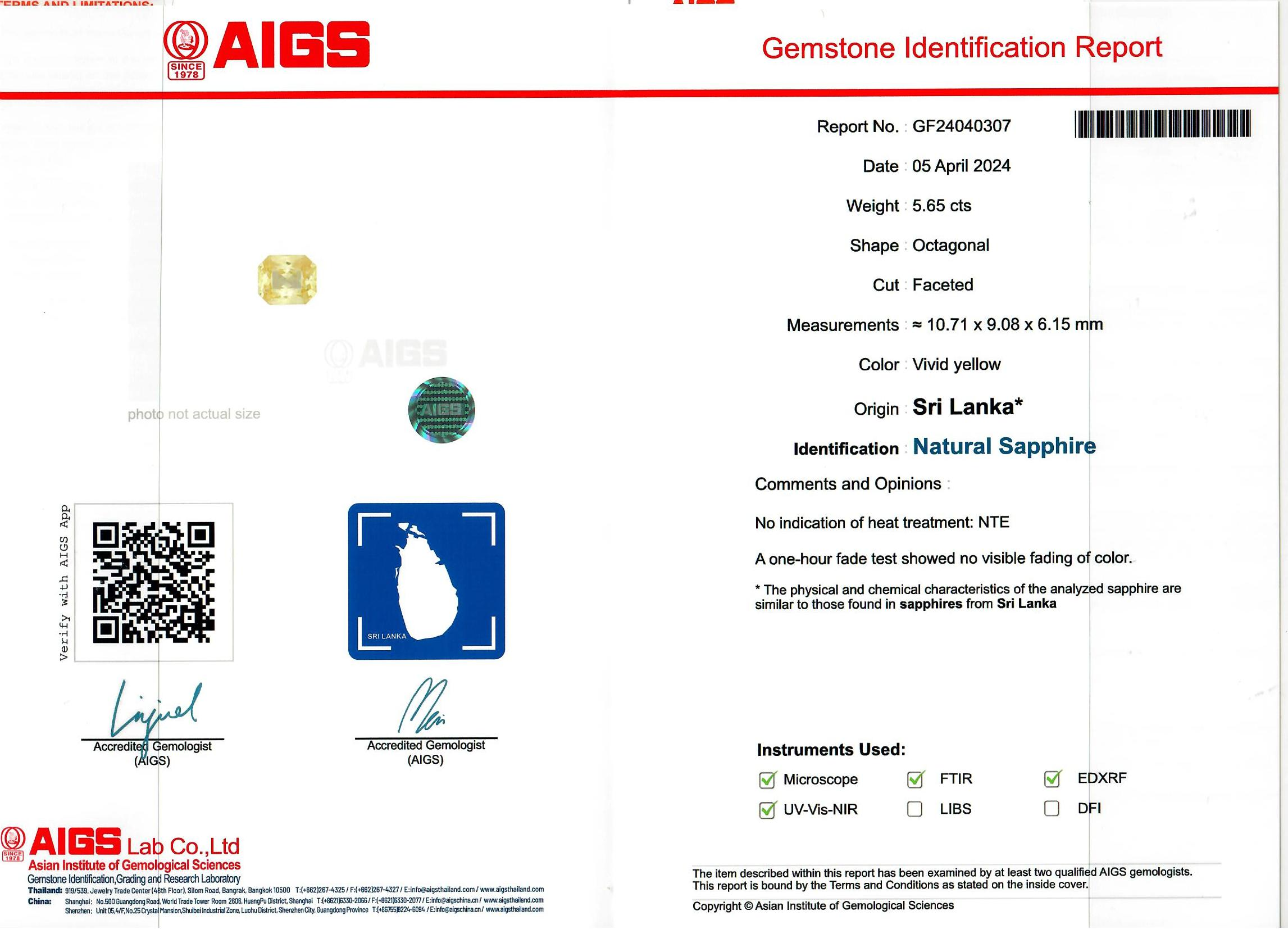 Loose Yellow Sapphire Gemstone AIGS Certified Yellow Sapphire
